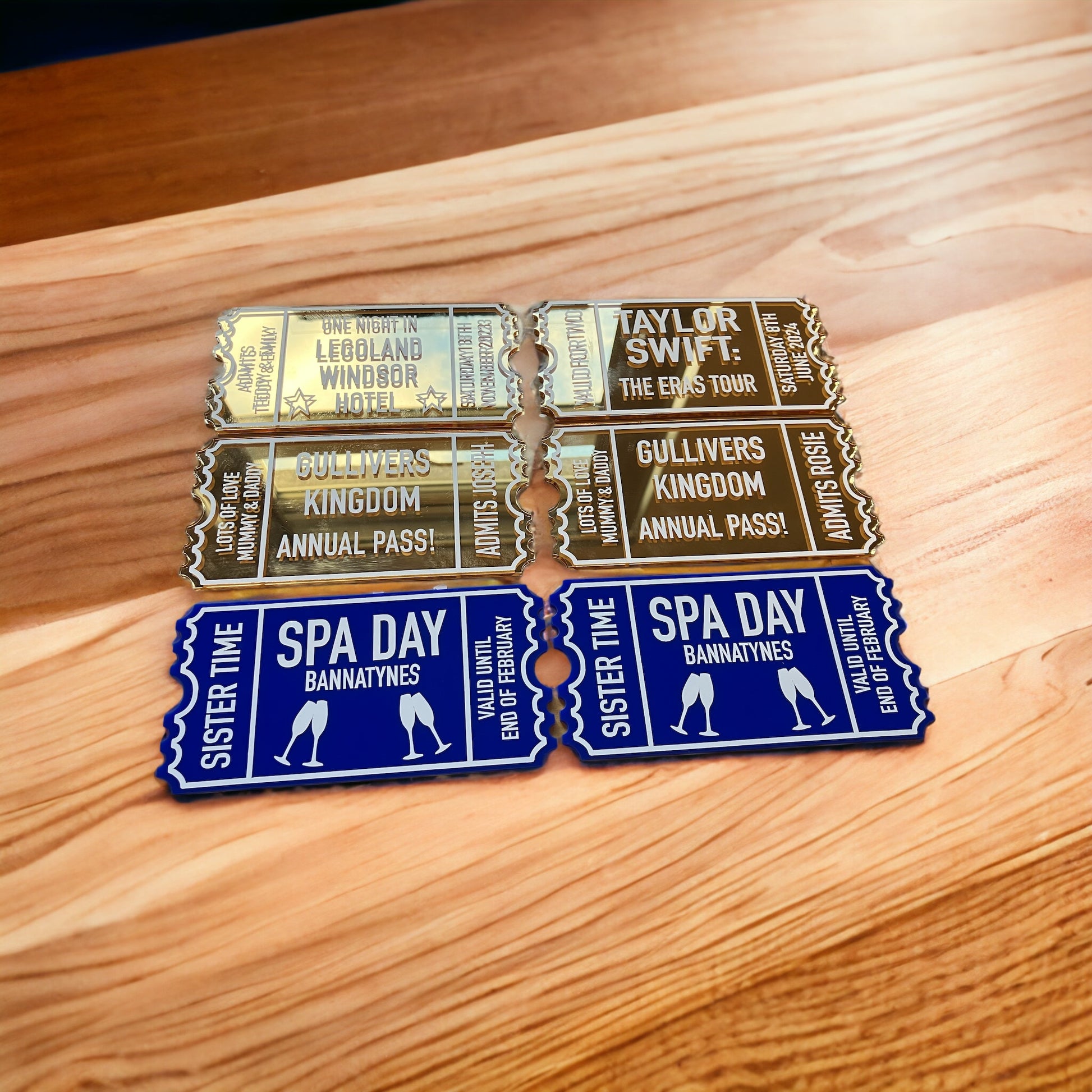 These beautiful tickets can be personalised with your event details, making them a special addition to any present.
