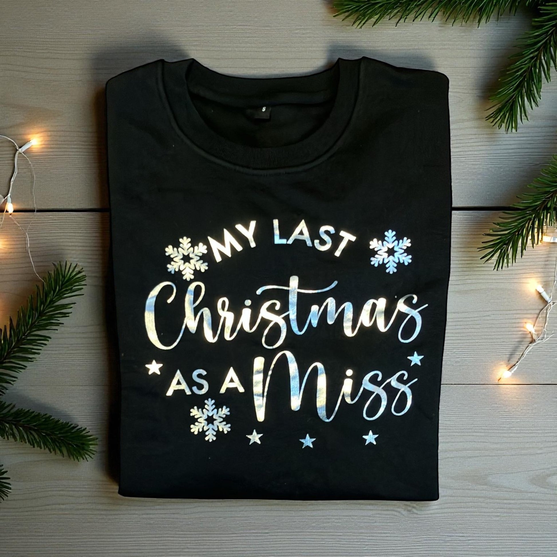 "Celebrate your last Christmas as a Miss or first Christmas as a Mrs in style with our Last/First Christmas Clothing. Available in festive red, classic black, and elegant white, choose from a jumper, t-shirt, or hoodie. Make a statement with our unique and heartwarming designs. Perfect for spreading Christmas cheer!"